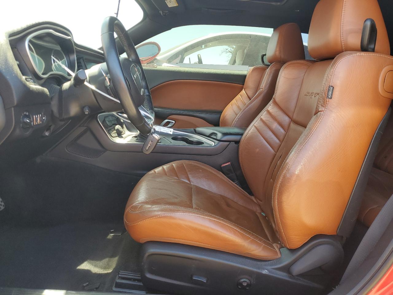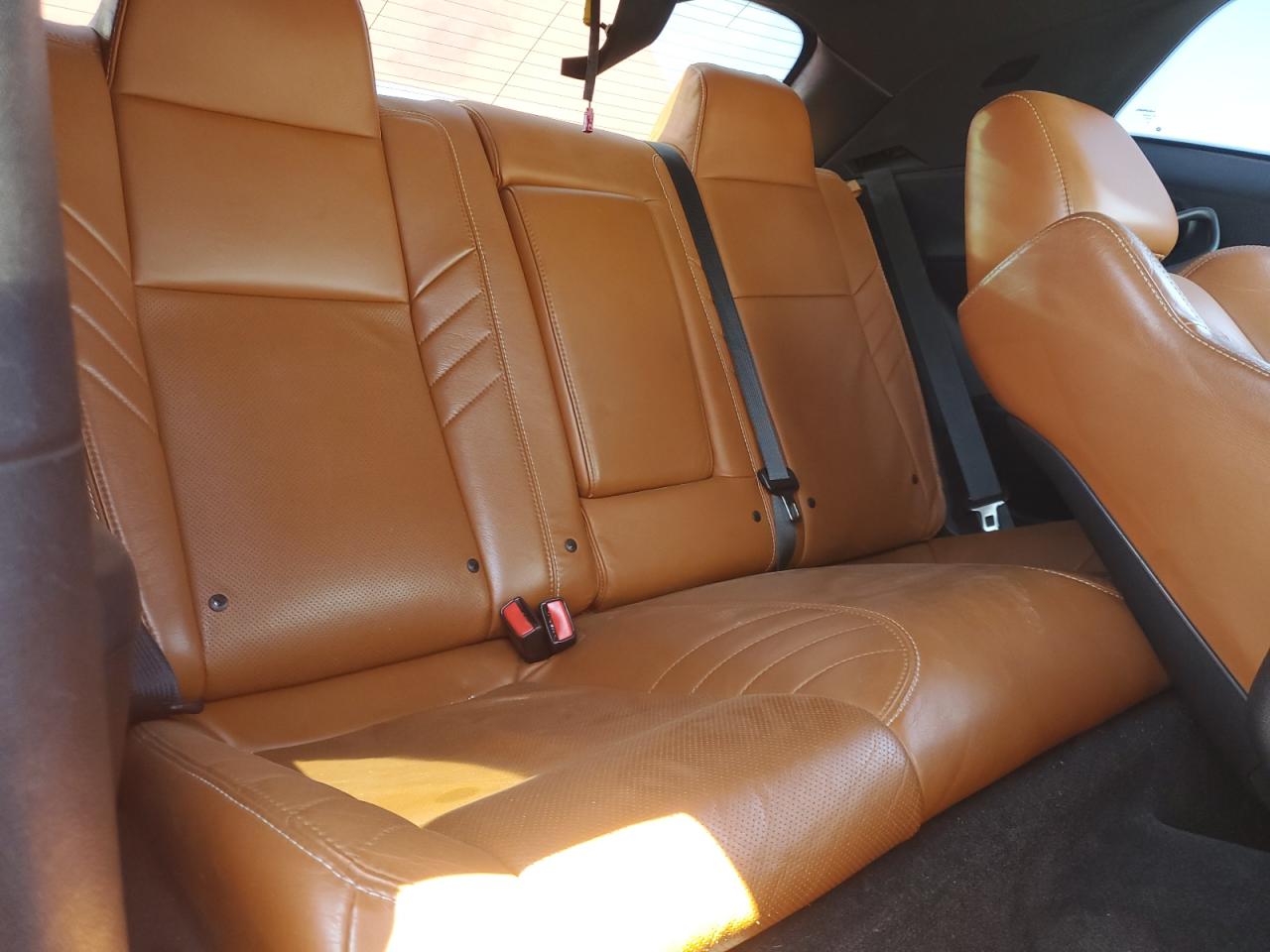 Inside, the Challenger continued its retro-modern blend, offering layouts that combined muscle car simplicity with modern comfort and technology. Standard models featured durable cloth seats in Black or Dark Slate Grey, while higher trims like the Scat Pack, SRT, and Redeye introduced premium Nappa leather, Alcantara suede inserts, SRT-embroidered headrests, and carbon fiber interior trim options. The dashboard design remained faithful to classic Challenger models, highlighted by a race-inspired instrument cluster, deep-set gauges, and a center stack tilted slightly toward the driver. Available equipment included heated and ventilated front seats, a heated steering wheel, and the Uconnect infotainment system with touchscreen sizes ranging from 7 to 8.4 inches, culminating in Track Pack performance pages for real-time telemetry.