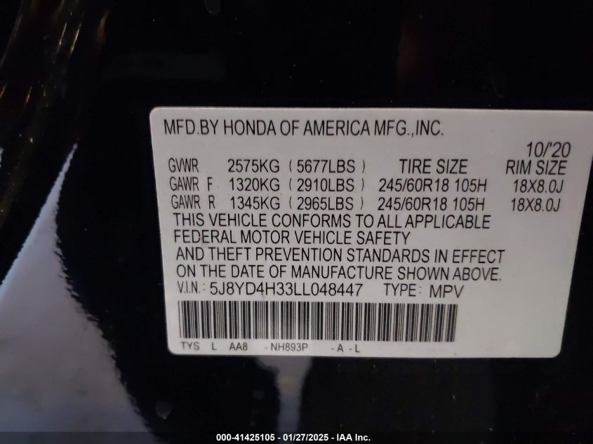 2020 ACURA MDX | 5J8YD4H33LL048447