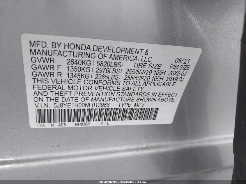 2022 ACURA MDX | 5J8YE1H00NL013966