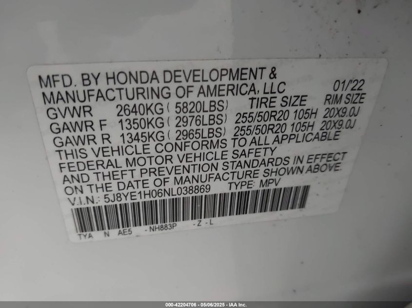 2022 ACURA MDX | 5J8YE1H06NL038869