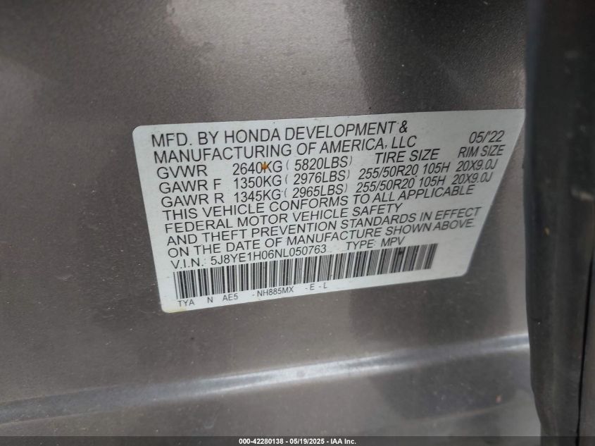 2022 ACURA MDX | 5J8YE1H06NL050763