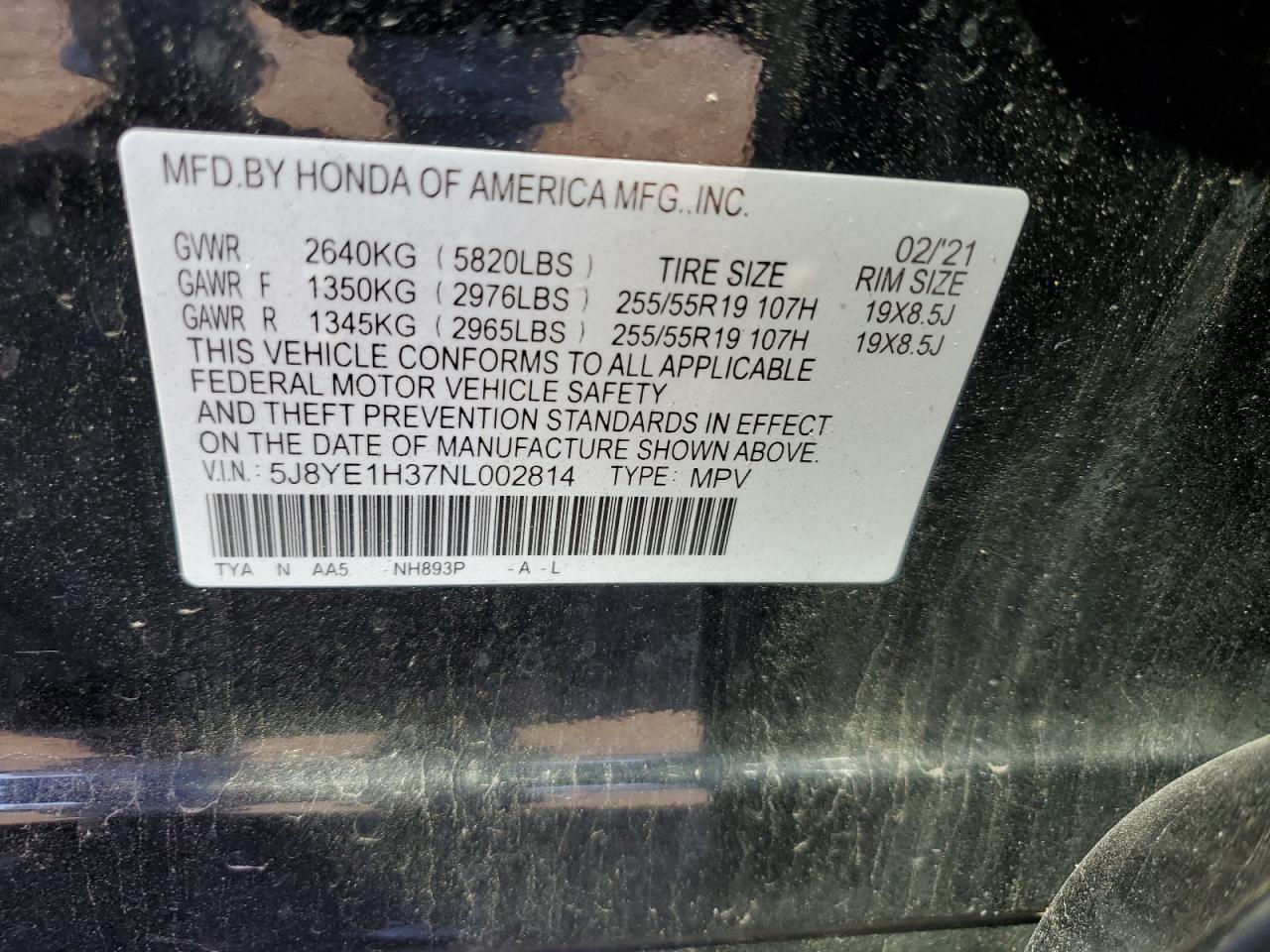 2022 ACURA MDX | 5J8YE1H37NL002814