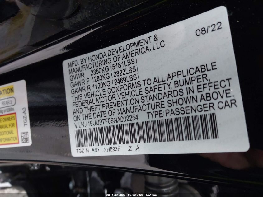 2022 ACURA TLX | 19UUB7F08NA002254