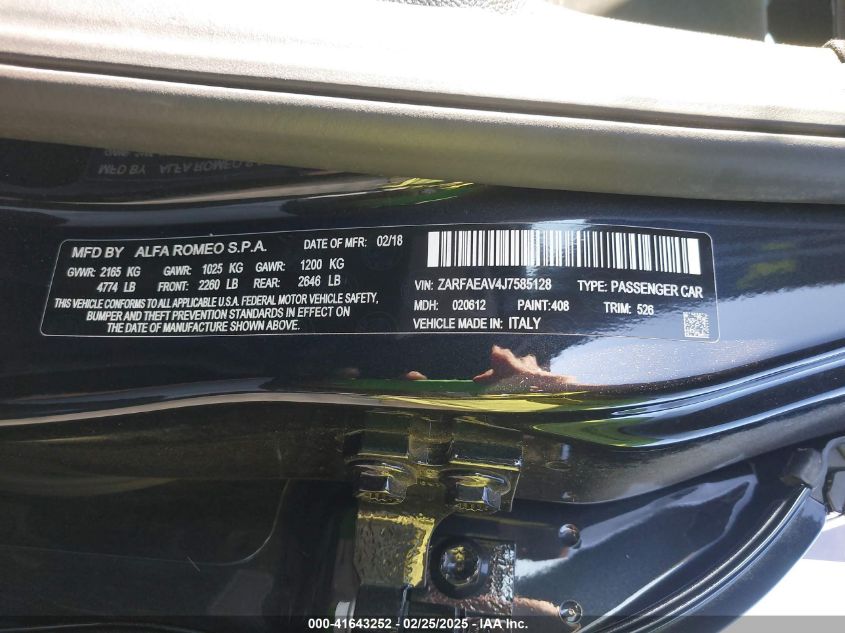 2018 ALFA ROMEO GIULIA (952) | ZARFAEAV4J7585128
