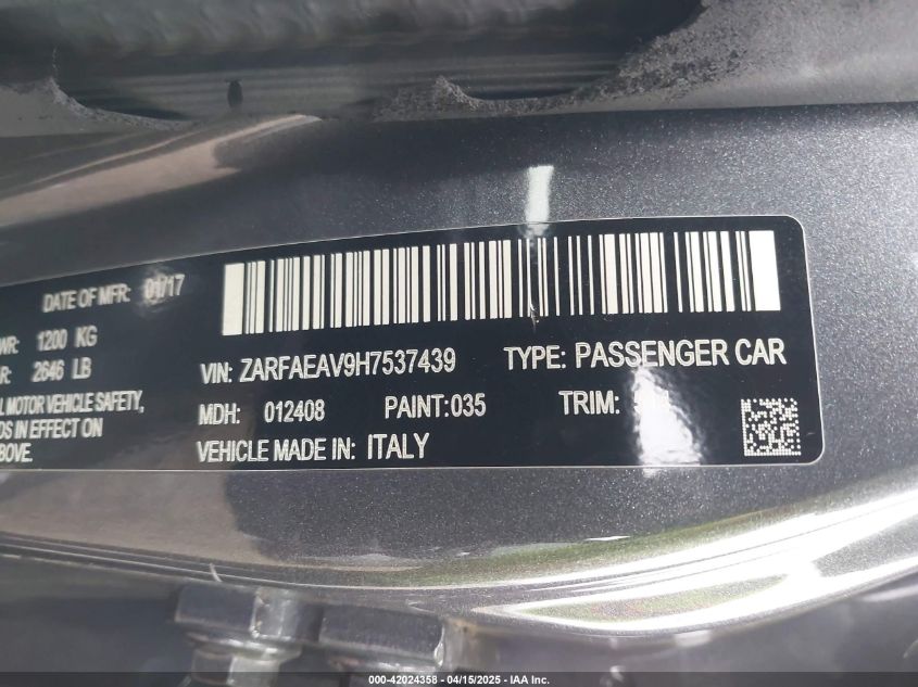 2017 ALFA ROMEO GIULIA (952) | ZARFAEAV9H7537439
