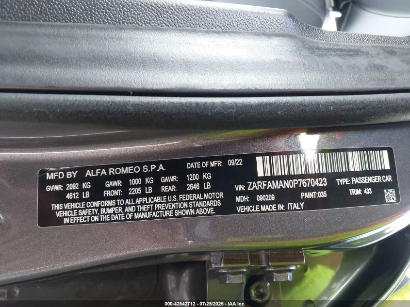 2023 ALFA ROMEO GIULIA (952) | ZARFAMAN0P7670423