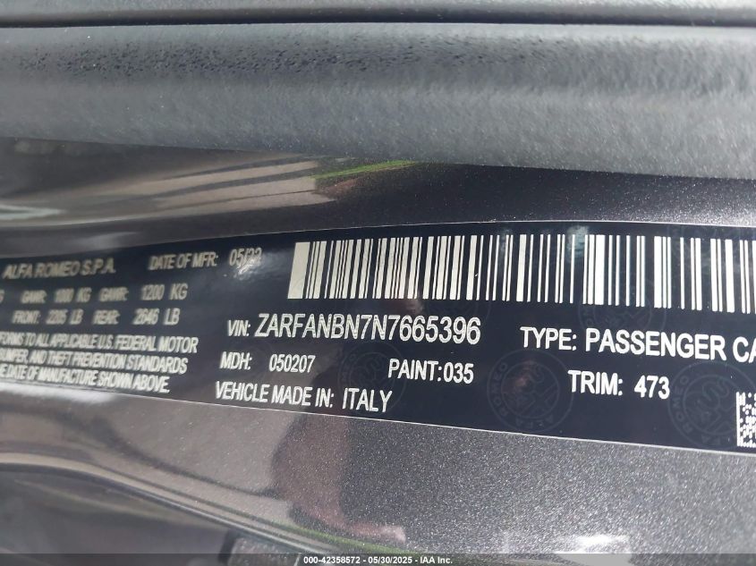 2022 ALFA ROMEO GIULIA (952) | ZARFANBN7N7665396