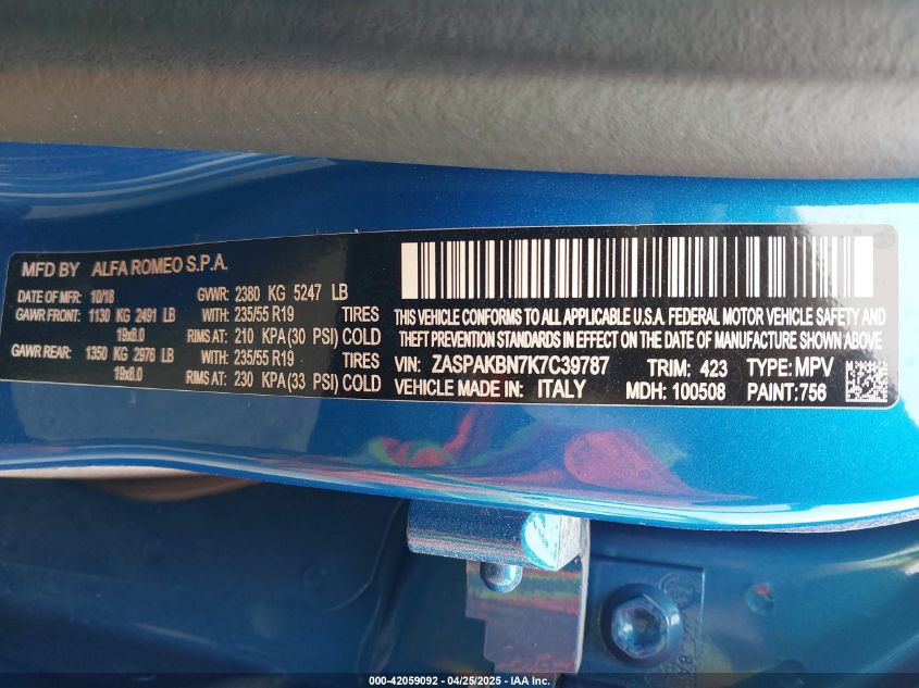2019 ALFA ROMEO STELVIO | ZASPAKBN7K7C39787