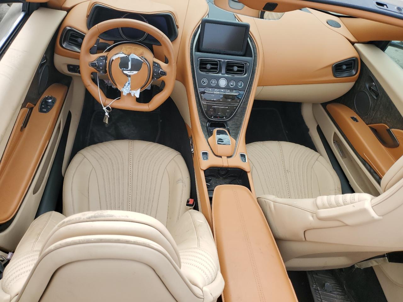 The interior was trimmed in Bridge of Weir leather, available in Obsidian Black, Dark Knight, Chancellor Red, or Cream Truffle, often in contrast duotone schemes. Custom stitching, Q by Aston Martin personalization, and carbon fiber or piano black trim options enhanced exclusivity. The DB11 featured real metal rotary dials and a Mercedes-derived 12" digital cluster and 8" infotainment screen.
