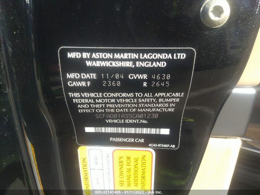 2005 ASTON MARTIN DB9 | SCFAD01A55GA01230