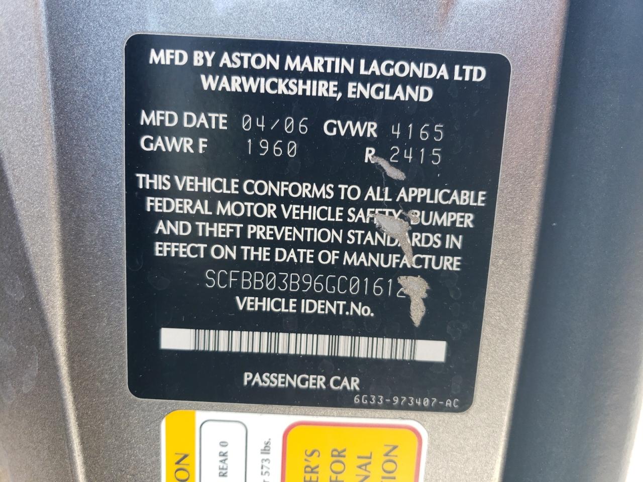 2006 ASTON MARTIN V8 VANTAGE | SCFBB03B96GC01612