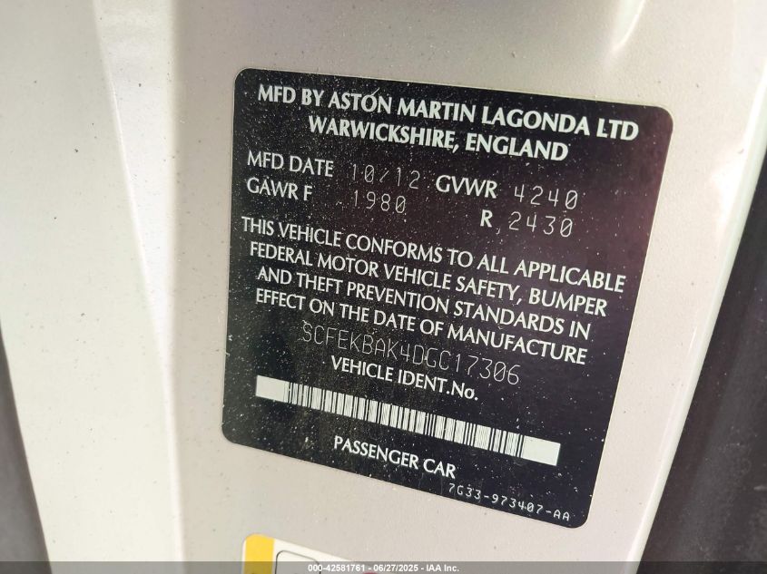 2013 ASTON MARTIN V8 VANTAGE | SCFEKBAK4DGC17306