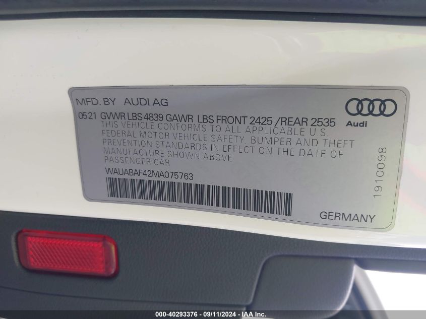 2021 AUDI A4 | WAUABAF42MA075763