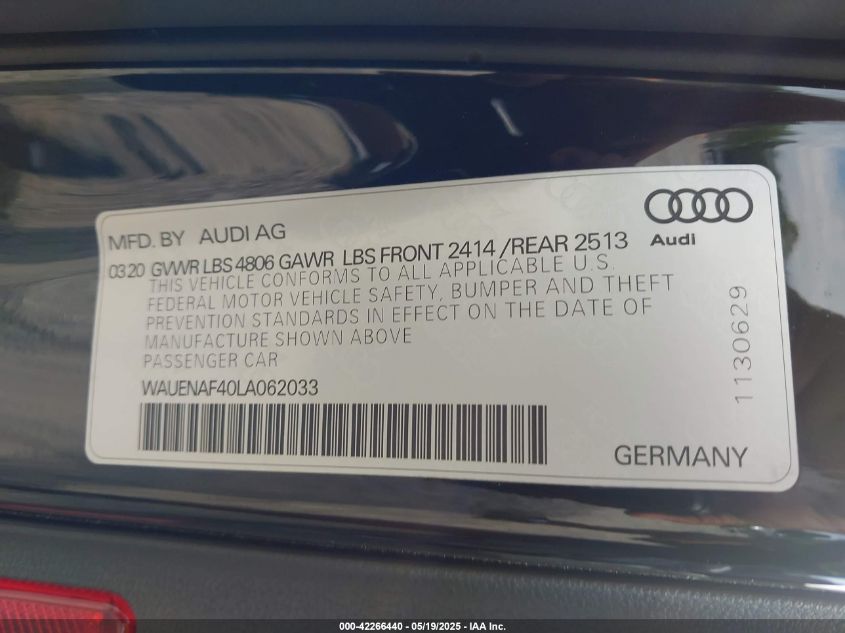 2020 AUDI A4 | WAUENAF40LA062033