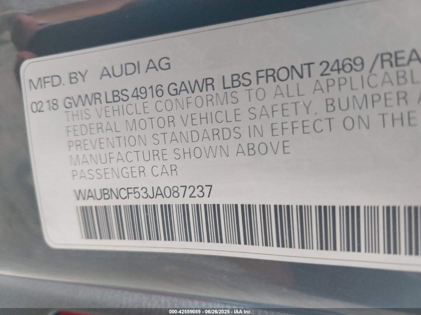 2018 AUDI A5 | WAUBNCF53JA087237
