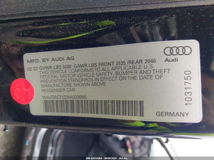 2022 AUDI A5 | WAUDACF52NA029856