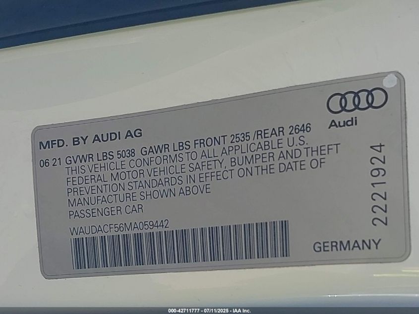 2021 AUDI A5 | WAUDACF56MA059442