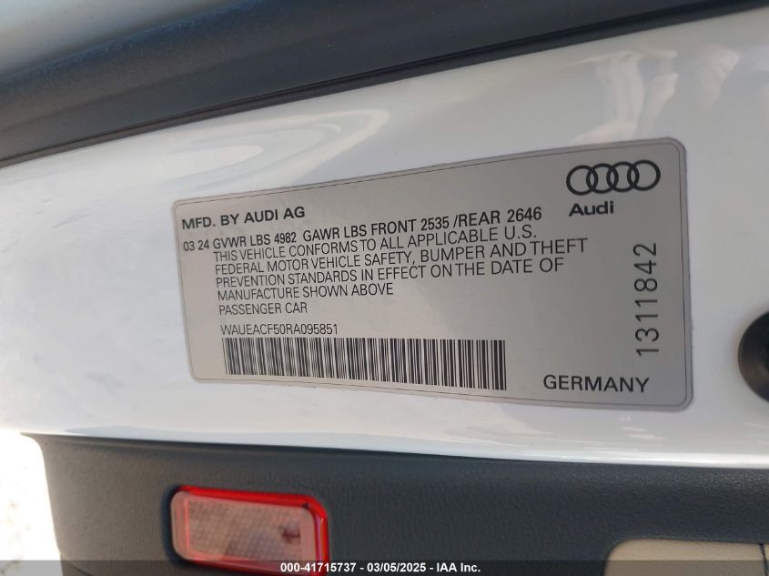 2024 AUDI A5 | WAUEACF50RA095851