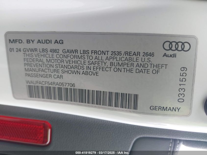 2024 AUDI A5 | WAUFACF54RA057706