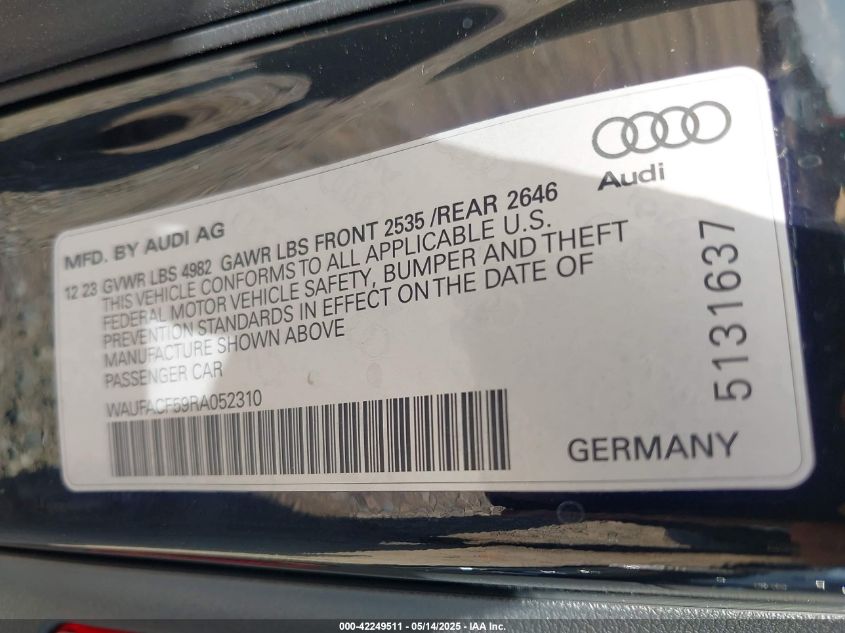 2024 AUDI A5 | WAUFACF59RA052310