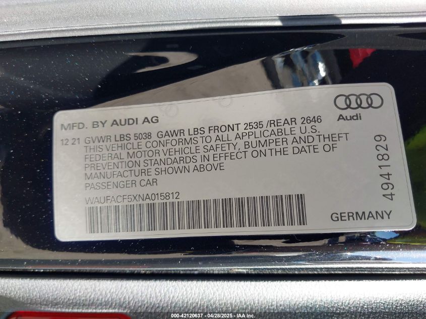 2022 AUDI A5 | WAUFACF5XNA015812