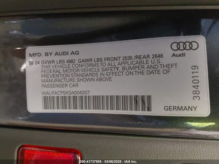 2025 AUDI A5 | WAUFACF5XSA004207