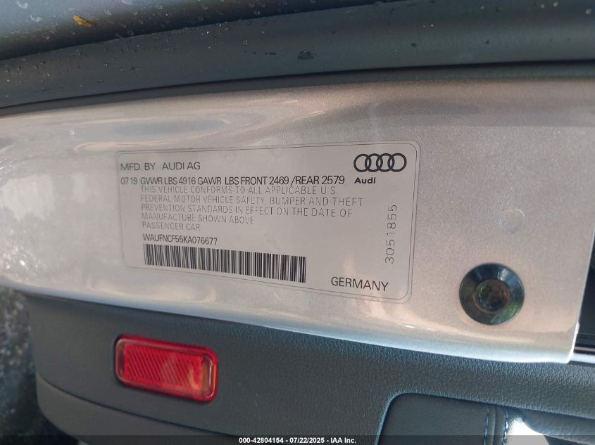 2019 AUDI A5 | WAUFNCF55KA076677