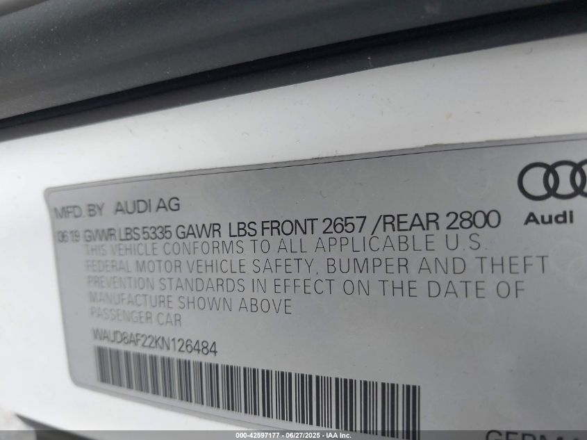 2019 AUDI A6 | WAUD8AF22KN126484
