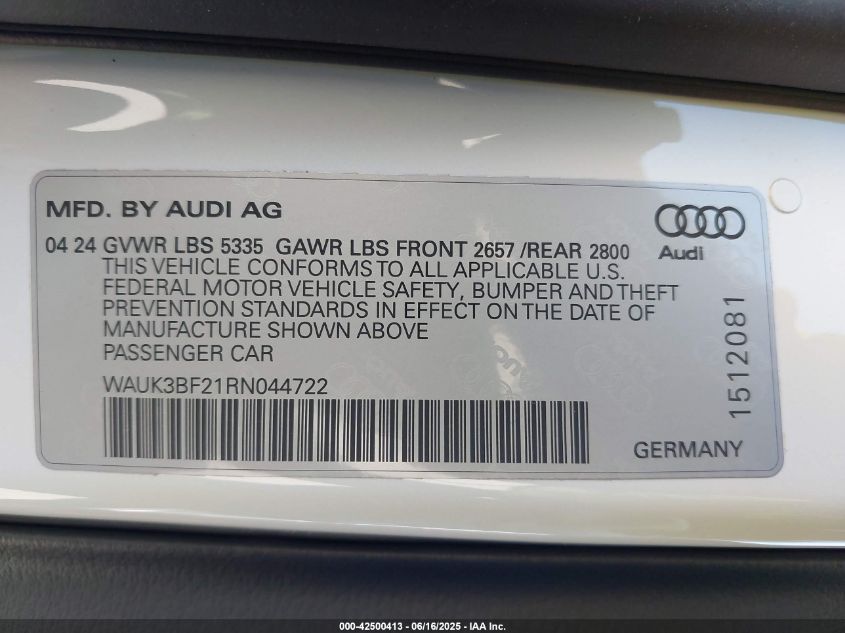 2024 AUDI A6 | WAUK3BF21RN044722