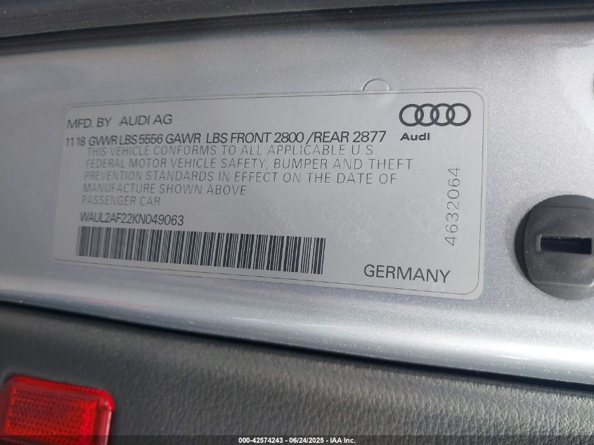2019 AUDI A6 | WAUL2AF22KN049063