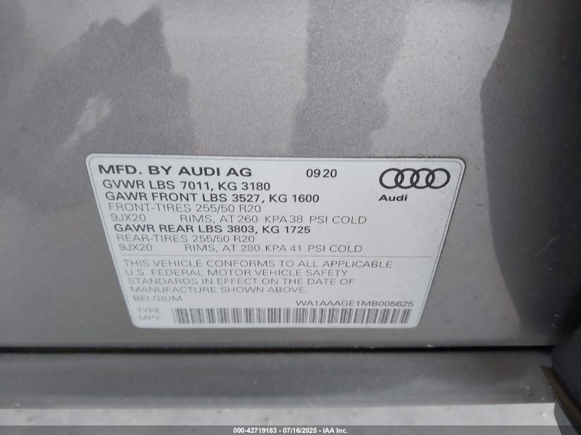 2021 AUDI E-TRON | WA1AAAGE1MB005625