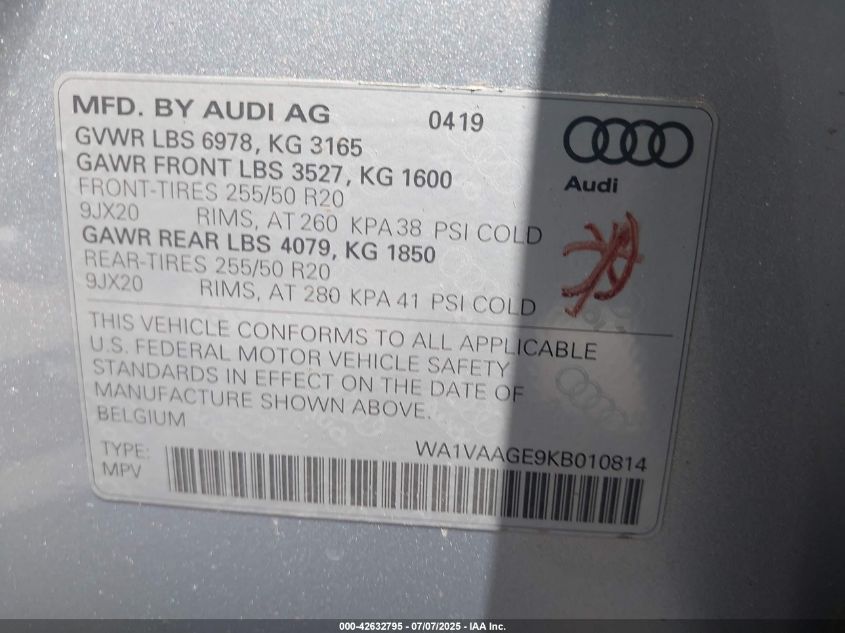 2019 AUDI E-TRON | WA1VAAGE9KB010814