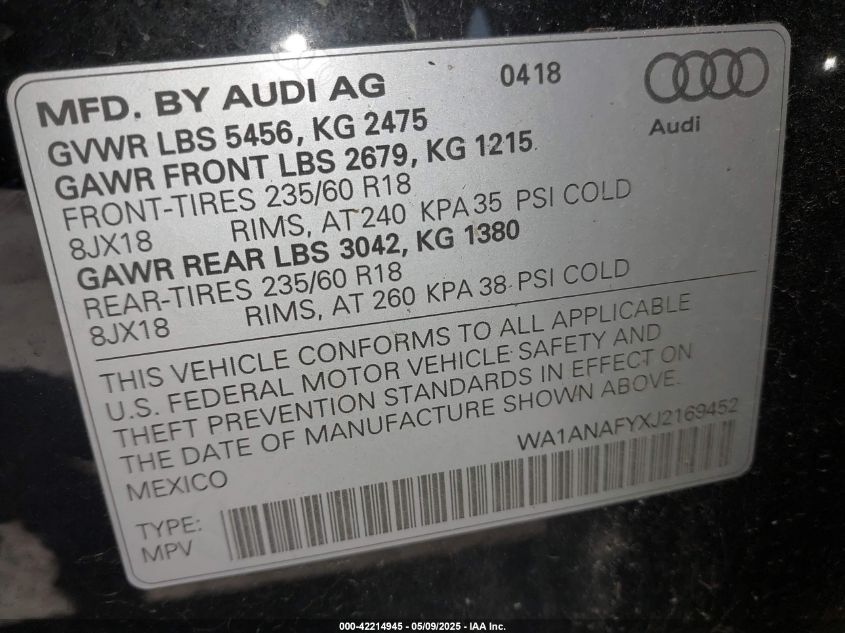 2018 AUDI Q5 | WA1ANAFYXJ2169452