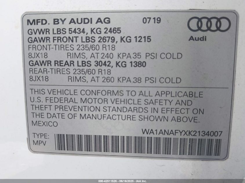 2019 AUDI Q5 | WA1ANAFYXK2134007
