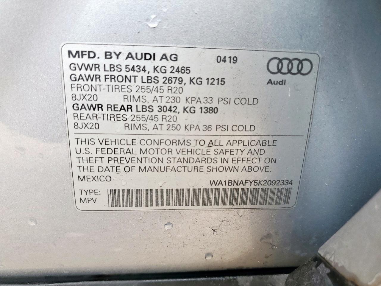 2019 AUDI Q5 | WA1BNAFY5K2092334