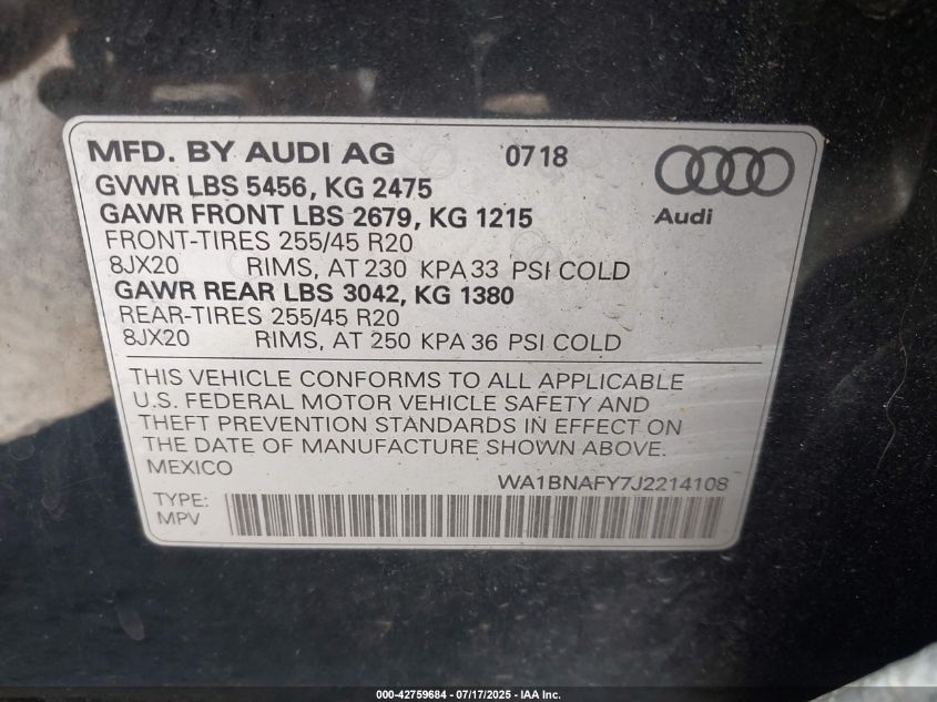 2018 AUDI Q5 | WA1BNAFY7J2214108