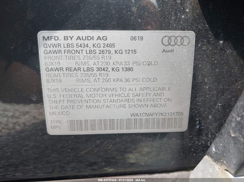 2019 AUDI Q5 | WA1CNAFY7K2131705