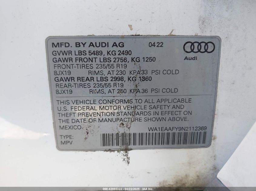 2022 AUDI Q5 | WA1EAAFY9N2112369