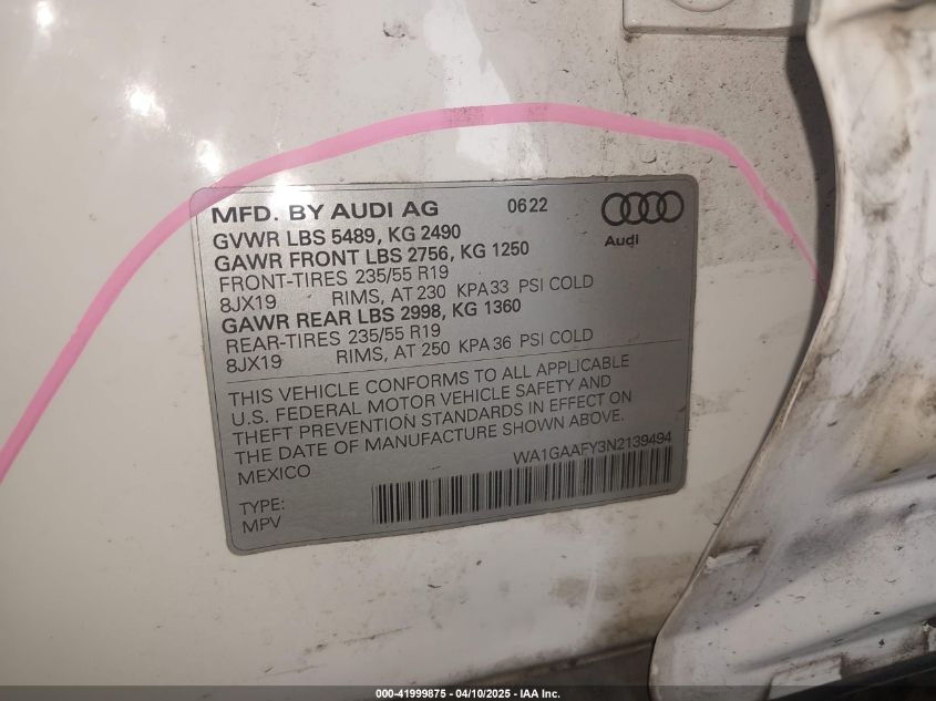 2022 AUDI Q5 | WA1GAAFY3N2139494