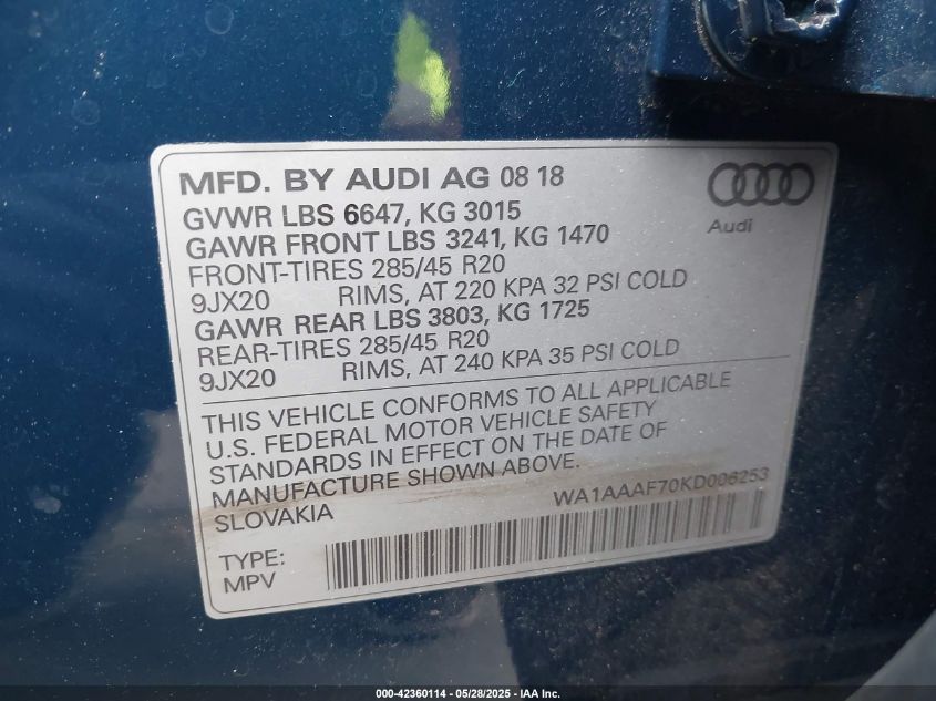 2019 AUDI Q7 | WA1AAAF70KD006253