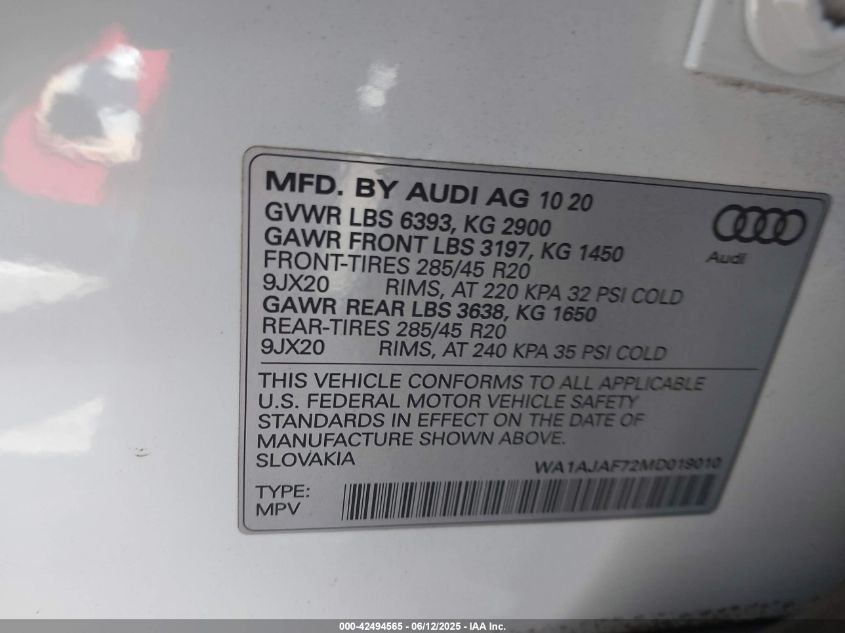 2021 AUDI Q7 | WA1AJAF72MD019010