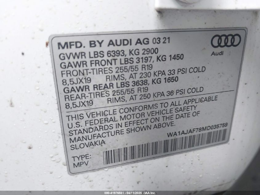 2021 AUDI Q7 | WA1AJAF78MD035759