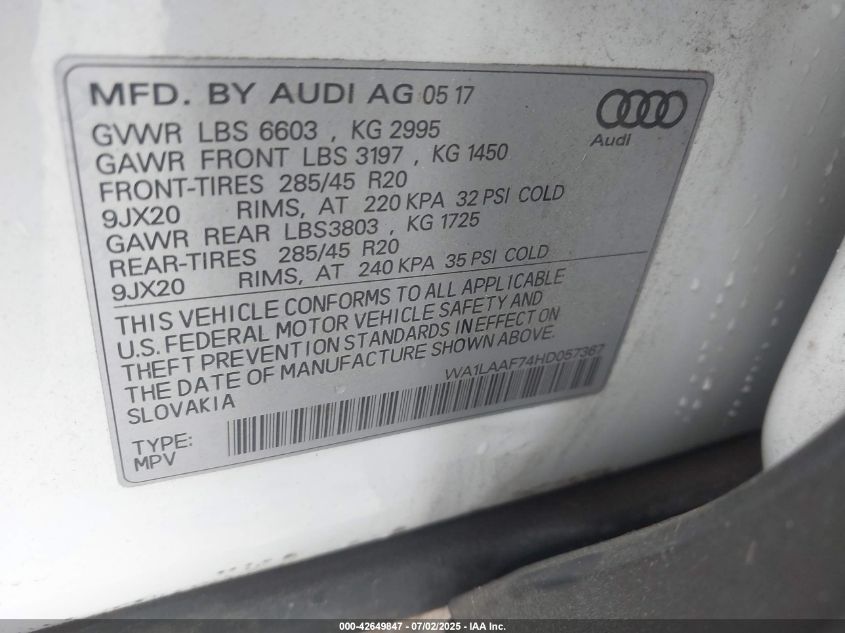 2017 AUDI Q7 | WA1LAAF74HD057367