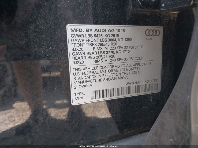2019 AUDI Q7 | WA1LHAF71KD017136