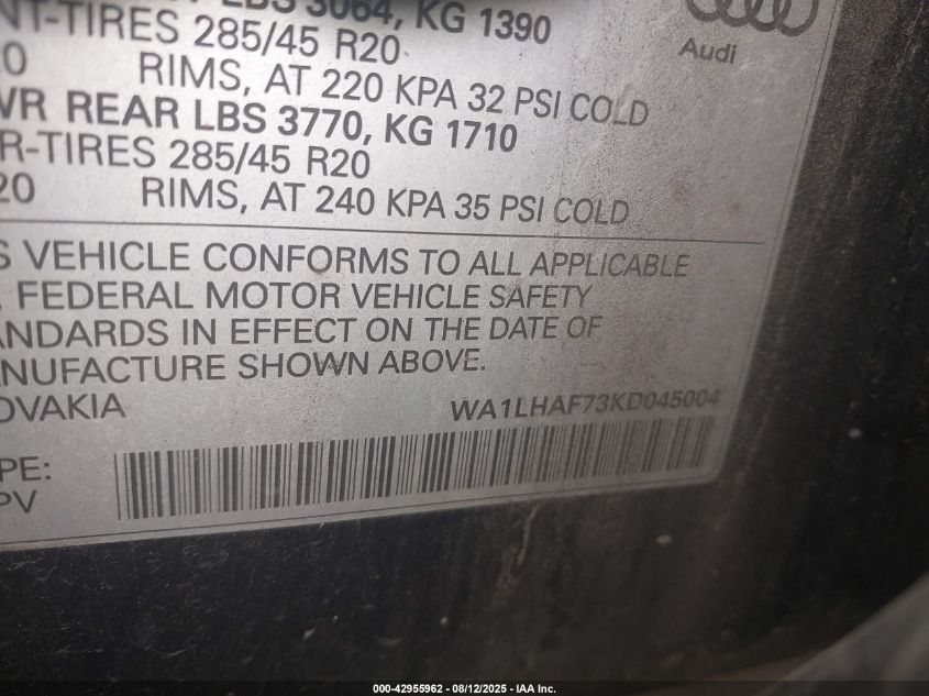 2019 AUDI Q7 | WA1LHAF73KD045004
