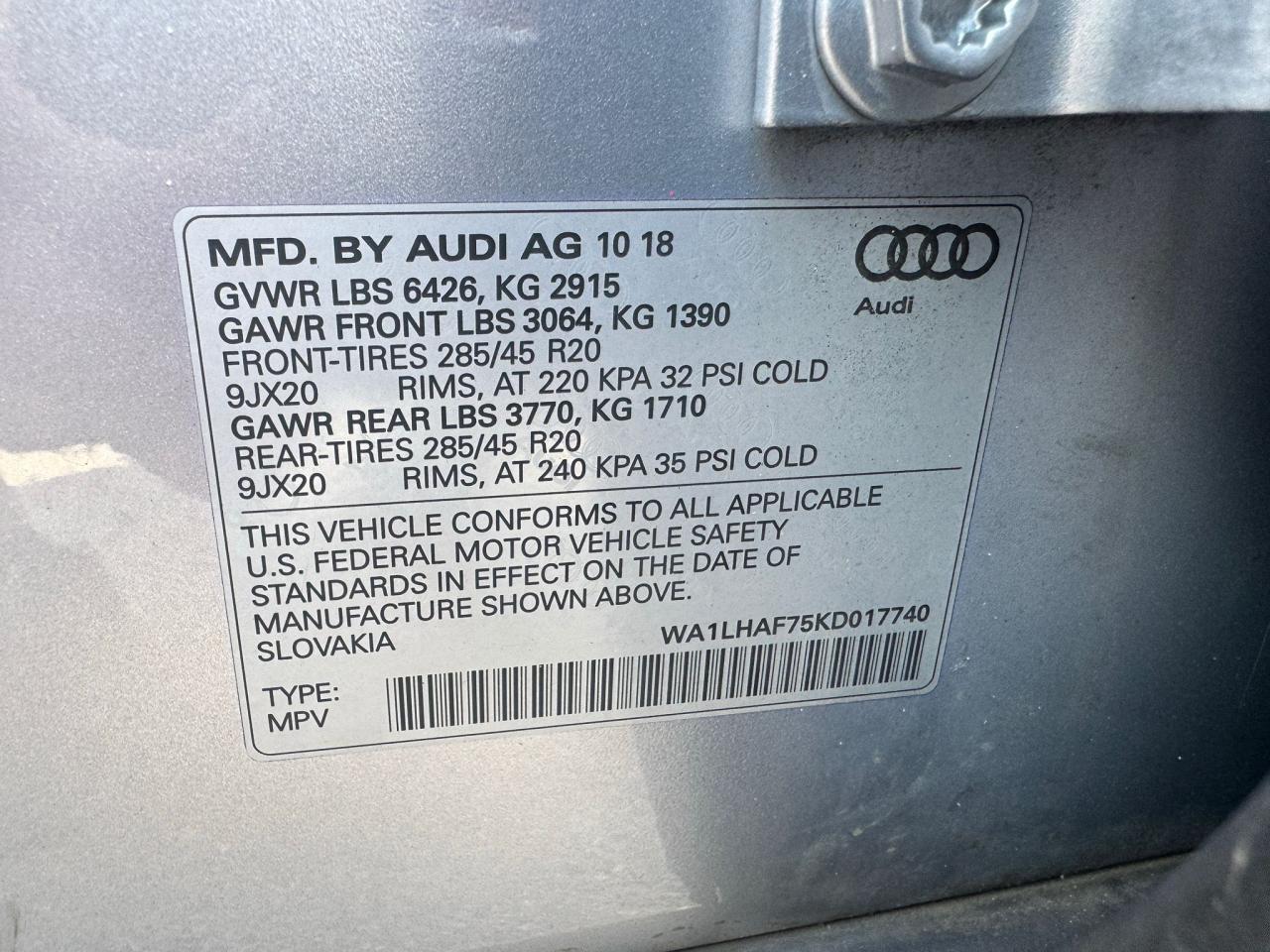 2019 AUDI Q7 | WA1LHAF75KD017740
