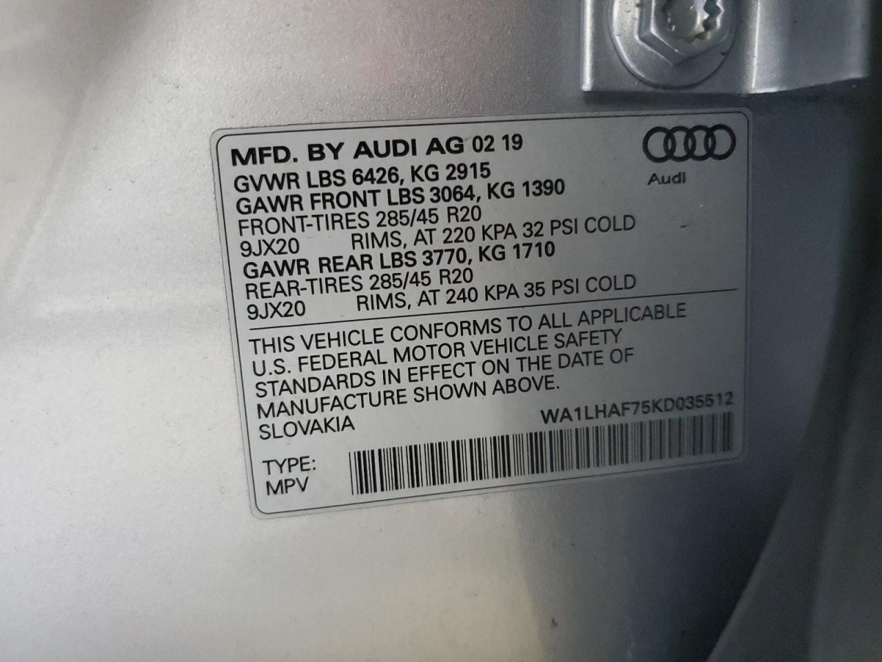2019 AUDI Q7 | WA1LHAF75KD035512