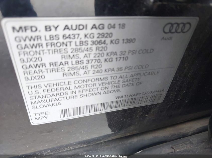 2018 AUDI Q7 | WA1LHAF77JD039446