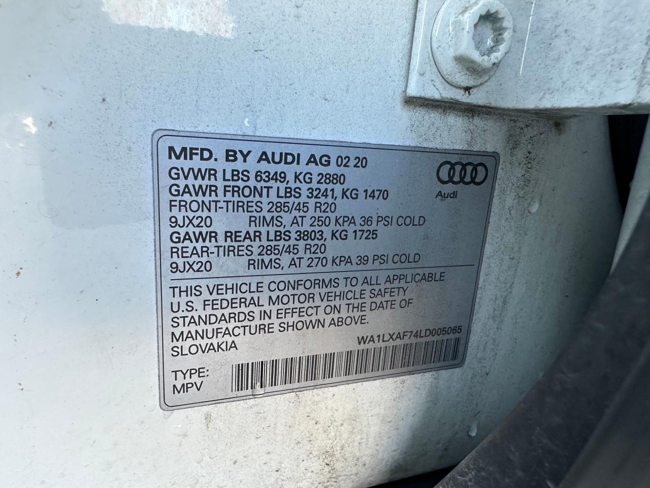 2020 AUDI Q7 | WA1LXAF74LD005065