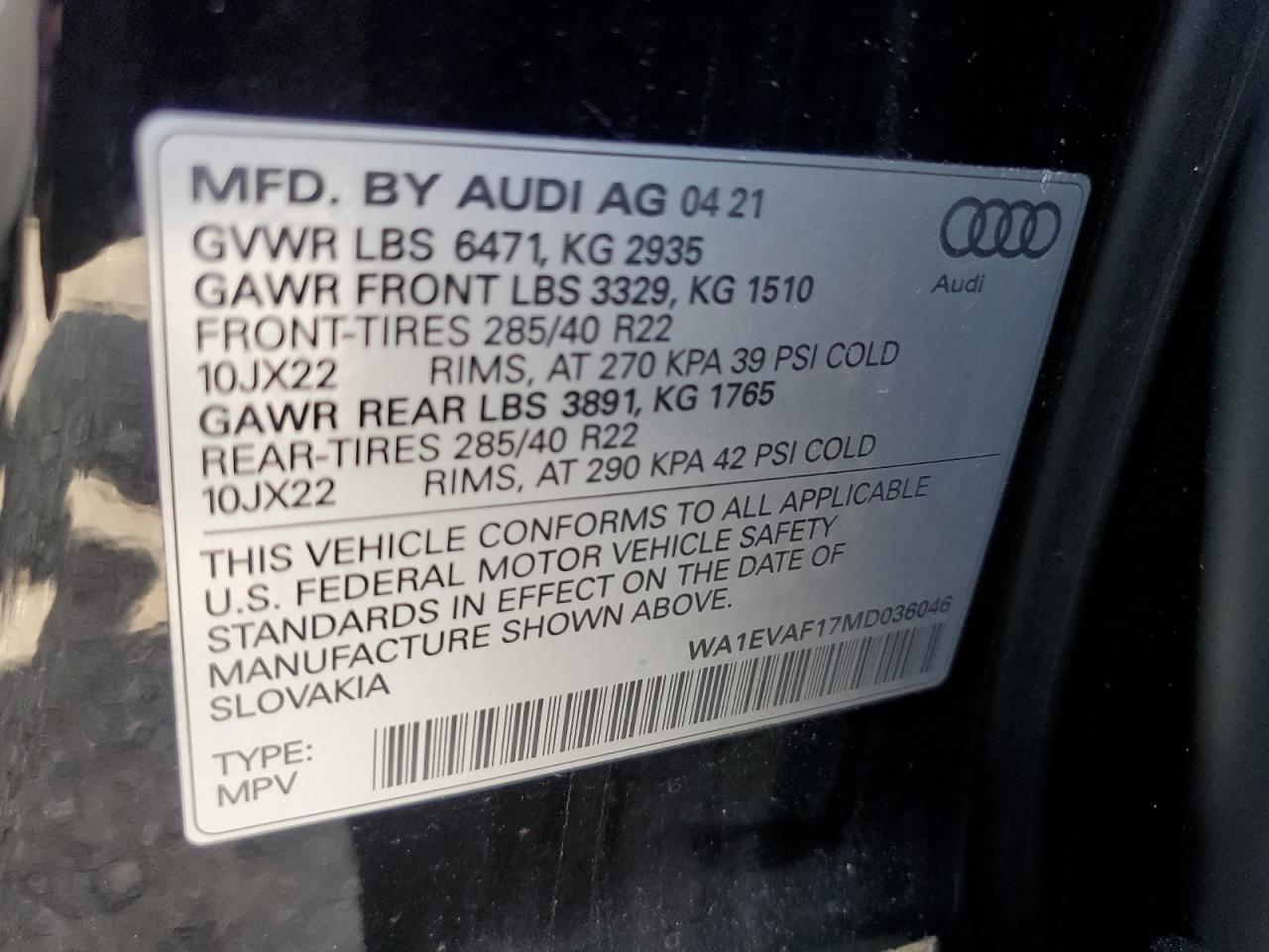 2021 AUDI Q8 | WA1EVAF17MD036046